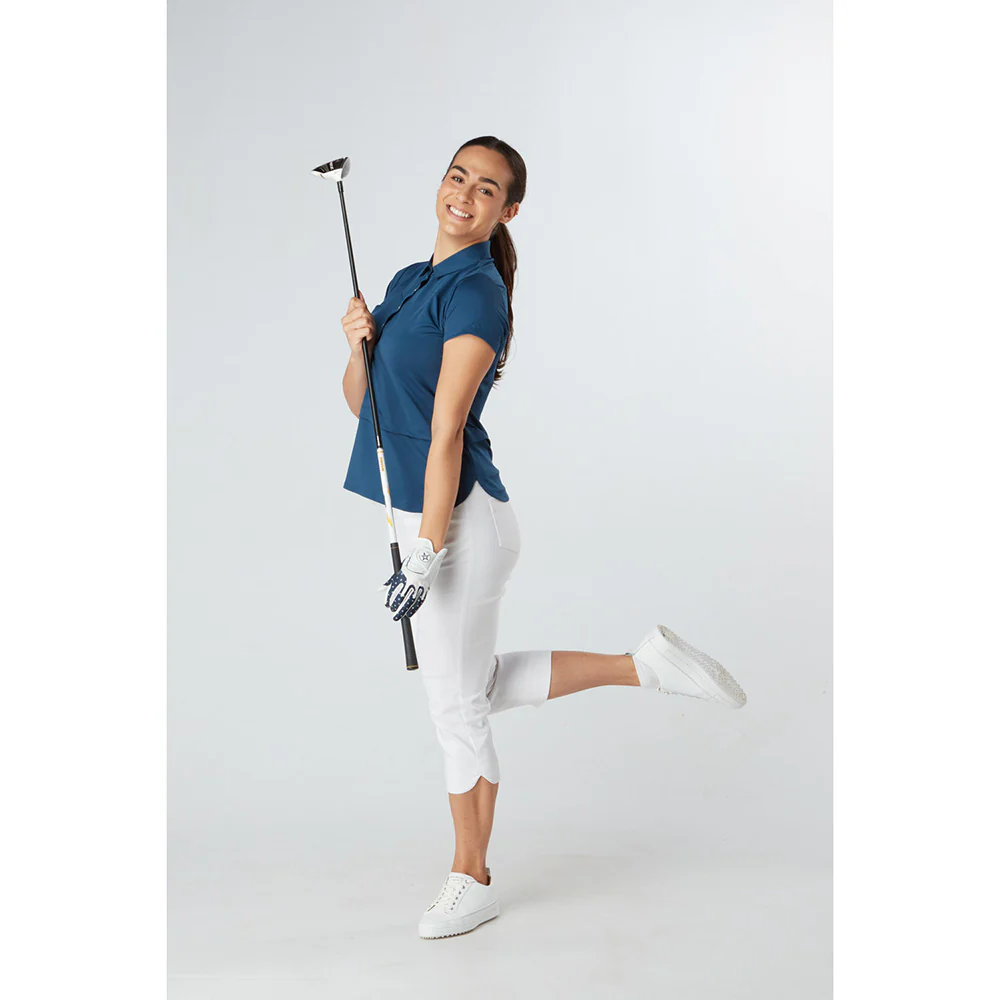 - "Amelie" cap sleeve polo in Atlantic blue